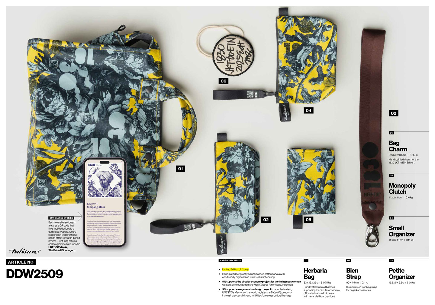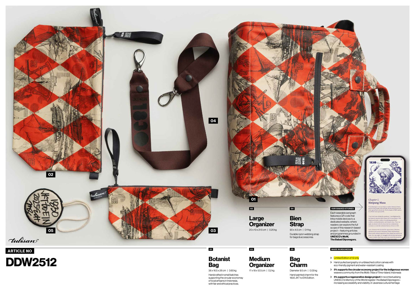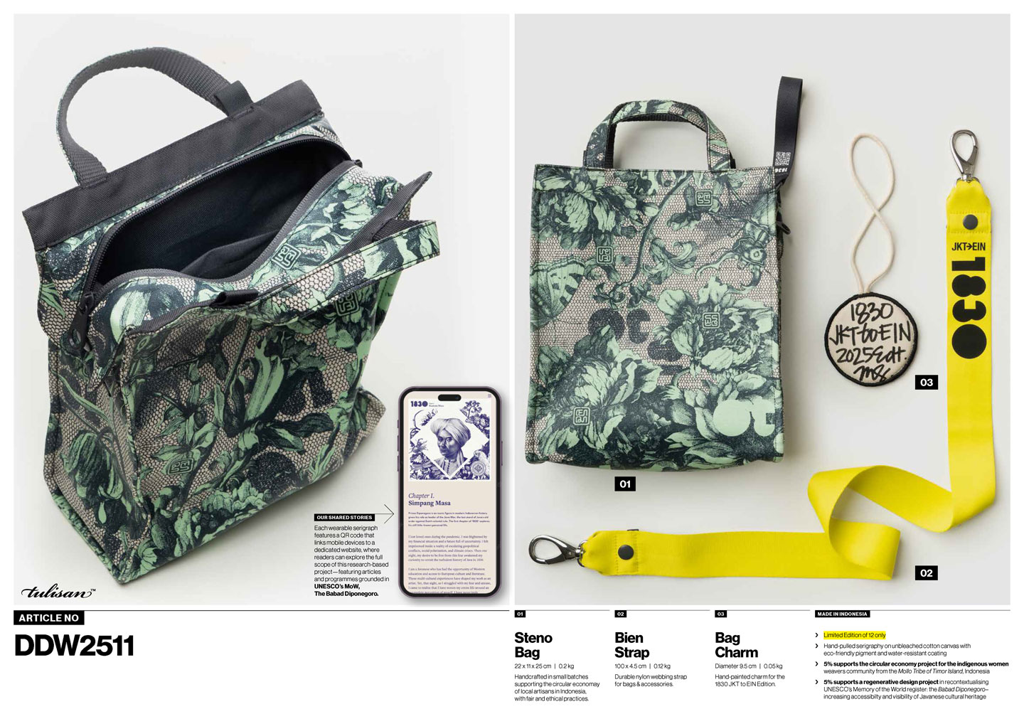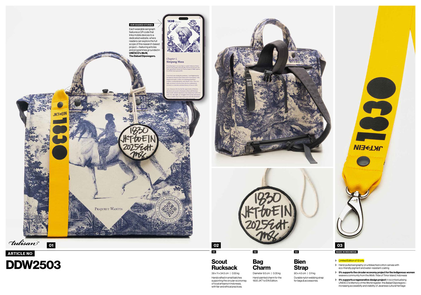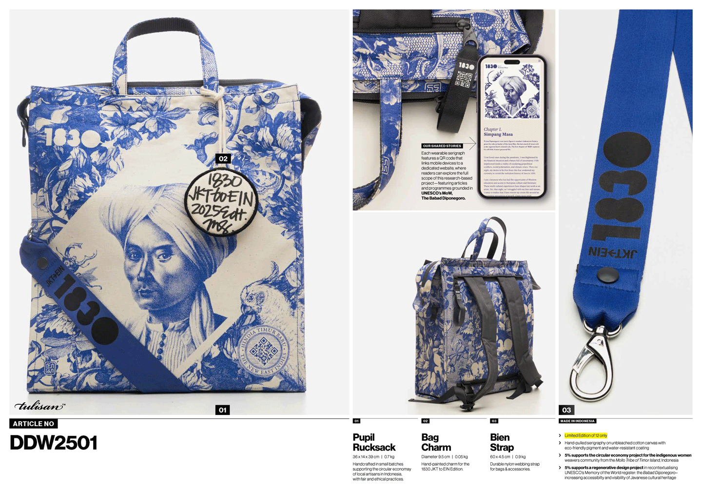 This exhibition presents modern wearable designs inspired by the intertwined histories of Indonesia and the Netherlands, examining how heritage, storytelling, and sustainability converge through artisanal craftsmanship. The collection is part of a research-based wearable art project grounded in UNESCO’s Memory of the World Register — The Babad Diponegoro, developed in ongoing collaboration with historian Peter Carey.